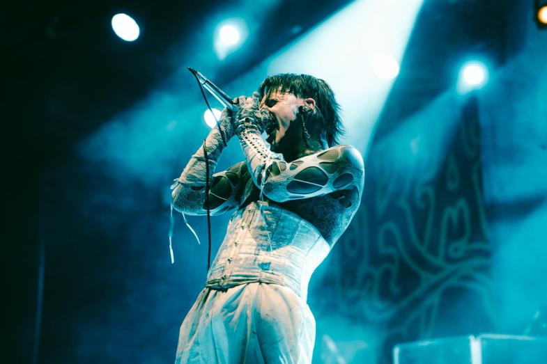 Der var lagt op til en god gammeldaws sort-hvid gyser på Amager Bios scene. Scenefolk og roadies havde løbet hurtigt for at få placeret to meget livagtige skeletfigurer, der tårnede op over publikum. Trommer og klaver var hegnet inde bag kirkegårdens gitter og slyngplanter, og dæmoniske figurer spøgte i backdroppet. Æstetisk lå det et sted mellem de gamle Dracula-film og Stranger Things. Et velovervejet setup, der fint spejlede Cradle of Filths tilgang med at blande 90’er-goth med moderne ekstremmetal. Efter en forlænget intro over PA’et med klaver og kirkegårdsstemning kom bandets patriark, Dani Filth, stavrende ind på scenen med sin genkendelige mimik, gotiske pigge og læderoutfit. Hr. Filth har altid haft en særlig stil på scenen, og denne anmelder ynder at sammenligne ham med en koffeinboostet goblin.