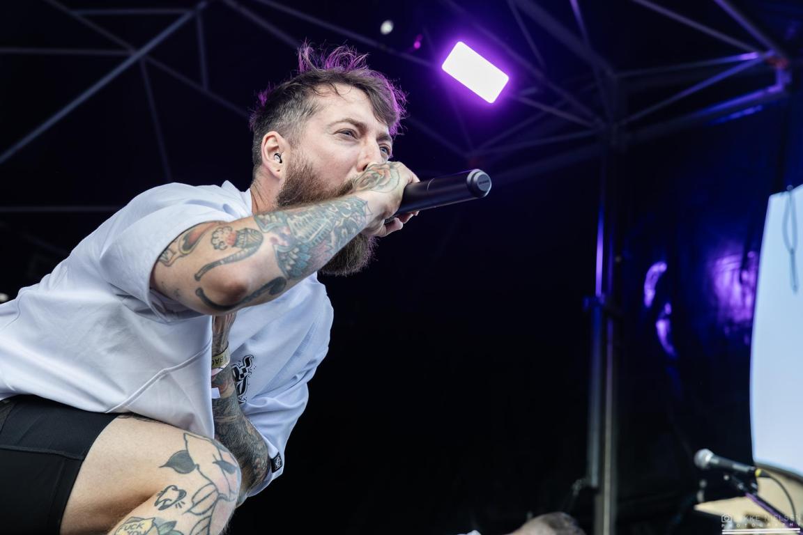 Og præcis klokken 18:04 skete det! Årets første moshpit på Dødsgangen blev sat i gang, og det var til Kōyas seneste singleudgivelse, ”Pig Wine”. En heftig omgang smadder, der har en så vild og blodig musikvideo på YouTube, at den kommer med alderskrav, hvis man vil se den. Det gik også voldsomt for sig på pladsen foran scenen, mens Kōya var helt nede omkring lænden, når de vuggede deres hoveder til musikken. Nummeret fungerede virkelig godt live og satte hele festivalpladsen i kog.