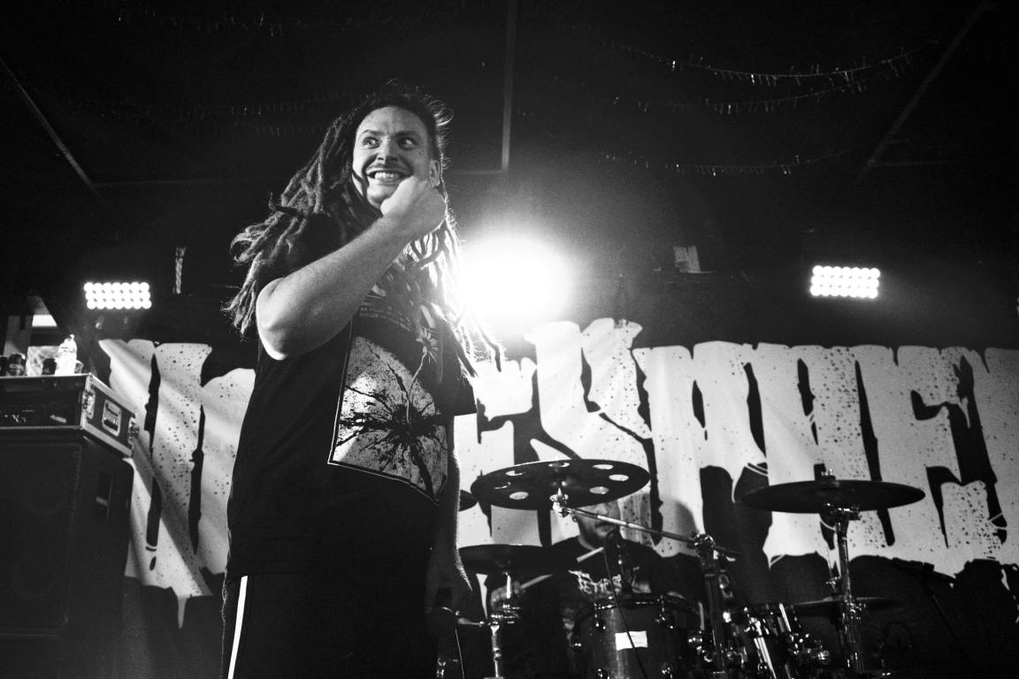 ‘Er I klar?!’, lød det retorisk fra forsanger Mathias Uldall, da “Heaven Is Ready To Fall” blev sparket i gang. Og derfra var der ingen vej tilbage. Publikum var nemlig fra start med på den værste, og uden nærmere instruks blev pitten atter rødglødende, og crowdsurfere blev ført sikkert fra scenen og ned til baren for enden af mejerihallen. Da bandet skiftede over til “Cutthroat”, syntes det allerede at lugte af en succes for husbandet. Der er bands, der skal hive publikum op fra slap, og som insisterende må bede om pits og surfere. Så er der bands som Hatesphere, hvor udskejelserne nærmest står i kø for at indfinde sig helt af sig selv. Uldall er nu engang en spradebasse af rang, og hans sprælske energi kommer til udtryk på en måde, der nærmest ikke kan andet end at smitte af på salen.