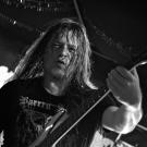 Efter tre numre tog bandet sig tid til at byde formelt velkommen, og der var tid til et lille – men kun meget lille – pusterum, inden “River Of Blood” blev taget velvilligt imod, og circlepitten nåede en størrelse, der truede med at kollidere med baren bagerst i lokalet. Uldall er tilsyneladende glad for de retoriske virkemidler, for med spørgsmålet ‘Vil I høre noget tungt?’ svingede “Resurrect With A Vengeance” herligt i gang, og frigangen på nakkerne i salen nåede nærmest fra fødder til balle. Selvom man er kommet godt fra start med et gavmildt publikum, kan man godt rejse stemningsmæssig kapital nok til at kræve noget af det, især når man hedder Hatesphere. Bandet bad om det største antal crowdsurfere, der nogensinde er set på Mejerhell. Der var næppe nogen i embeds medfør for rekordbøgerne til stede, men de næste par minutter var der nærmest ikke et øjeblik, hvor der ikke var vandrette kroppe i luften. Det var nu ikke kun Uldall, der gjorde en god figur. Alle i bandet var veloplagte, og jeg tog mig især i at nyde, hvad Peter Lyse Karmark serverede af lækkerier fra sin guitar.