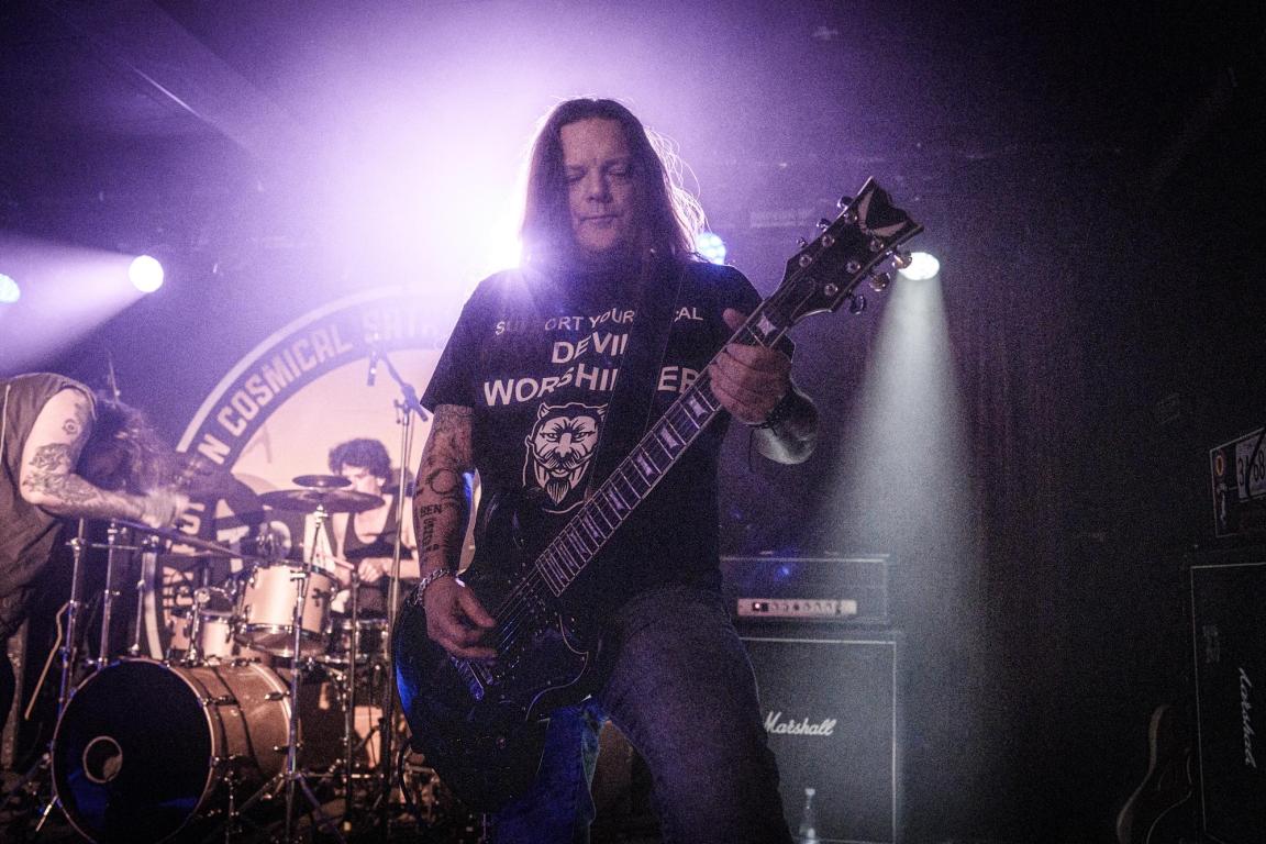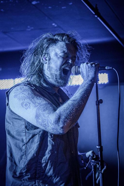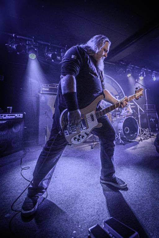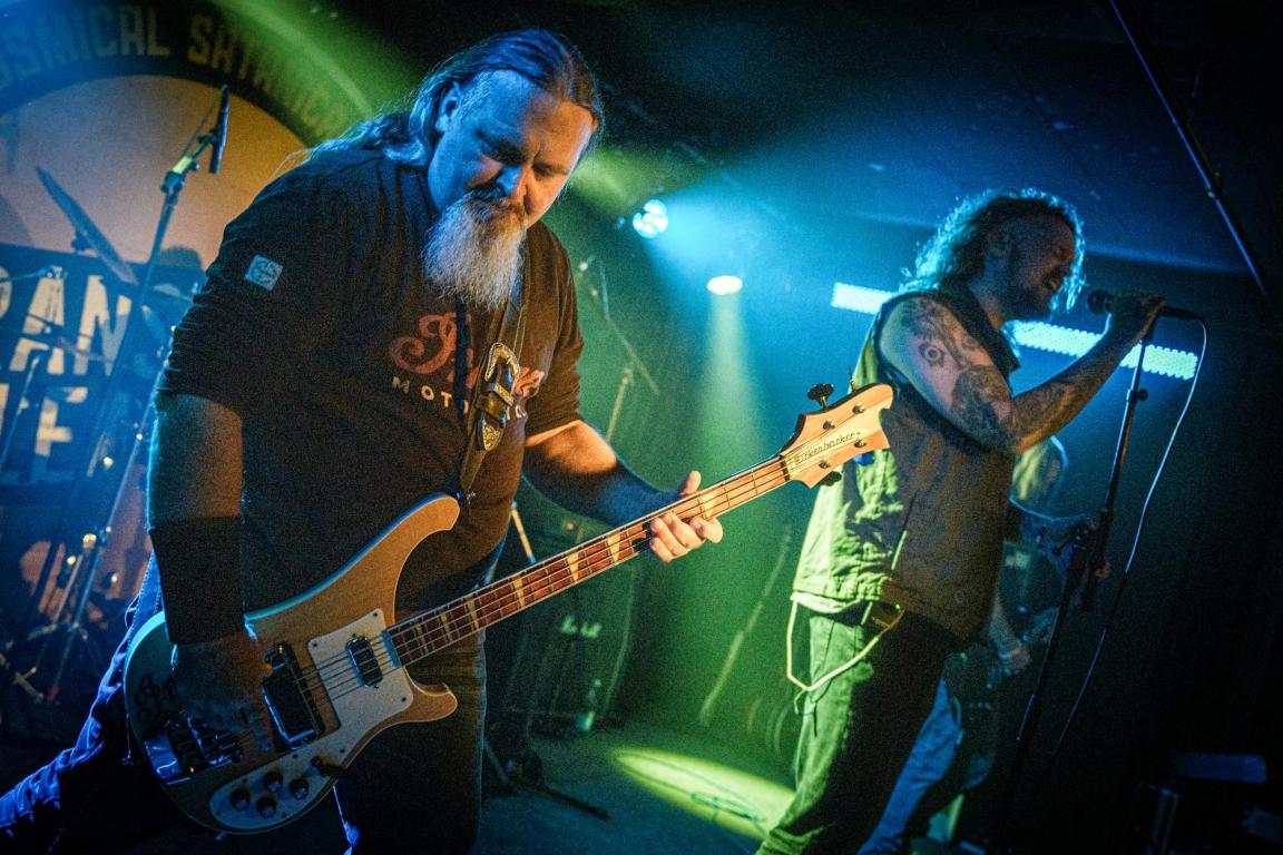 De lokale skarpskytter i Patron var blevet valgt til at skyde aftenen godt i gang. Patron består af tidligere medlemmer fra Anoxia og Viva la Wolfe og spiller oldschool stoner/doom. Noget, jeg lagde mærke til, da bandet fremførte første nummer, var, hvor meget bassen fyldte i lydbilledet. I løbet af de tredive minutter, esbjergenserne spillede, gik det så op for mig, at det ikke var et resultat af en halvhjertet lydprøve, men tværtimod en integreret del af Patrons lyd. Dette understregedes da også i sidste nummer med noget så sjældent nu til dags som en bassolo med effektpedal. Forsanger Gessner Roland brændte virkelig igennem og fremstod uimodståeligt talentfuld. Han lød det ene øjeblik som Layne Staley (Alice in Chains) og det næste som Kory Clarke (Warrior Soul). Publikum vuggede lidt med til de langsomme og slæbende rytmer, og jeg så mere end et par anerkendende nik rundtomkring i salen.