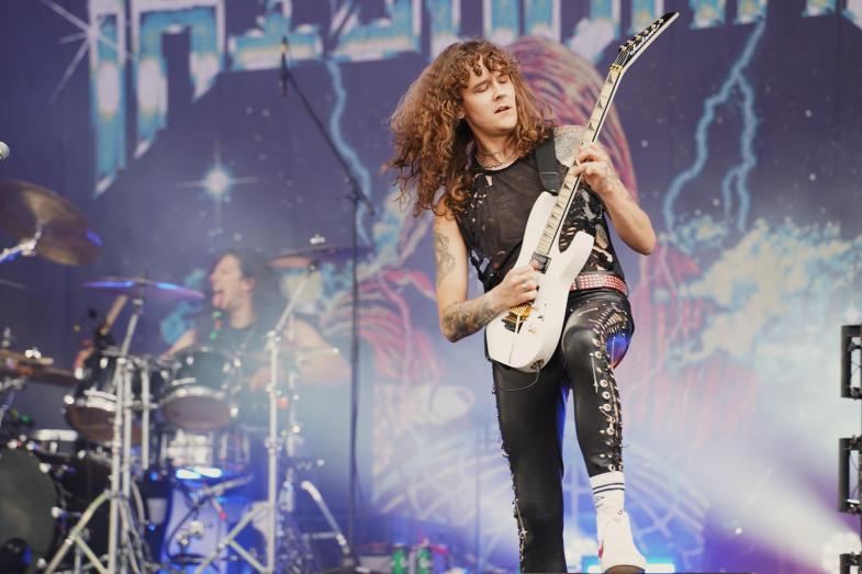 Britiske Tailgunner er på deres Summer Blitz Tour rundt i Europa for tiden, og fredag eftermiddag var de fem musikere klar til at berige de fremmødte på Area 53 med rendyrket, kompromisløst og autentisk heavy metal. Bandet har blot eksisteret siden 2022, og i 2023 udgav de deres debutlangspiller, Guns for Hire. På trods af deres kun tre år på bagen har kvintetten fået megen ros for deres musikalske udspil, og de har haft flere udsolgte koncerter på deres headlinerturné i både England og Tyskland. Undertegnede var derfor tilsvarende spændt på at opleve pionererne af den nye nye bølge af britisk heavy metal.