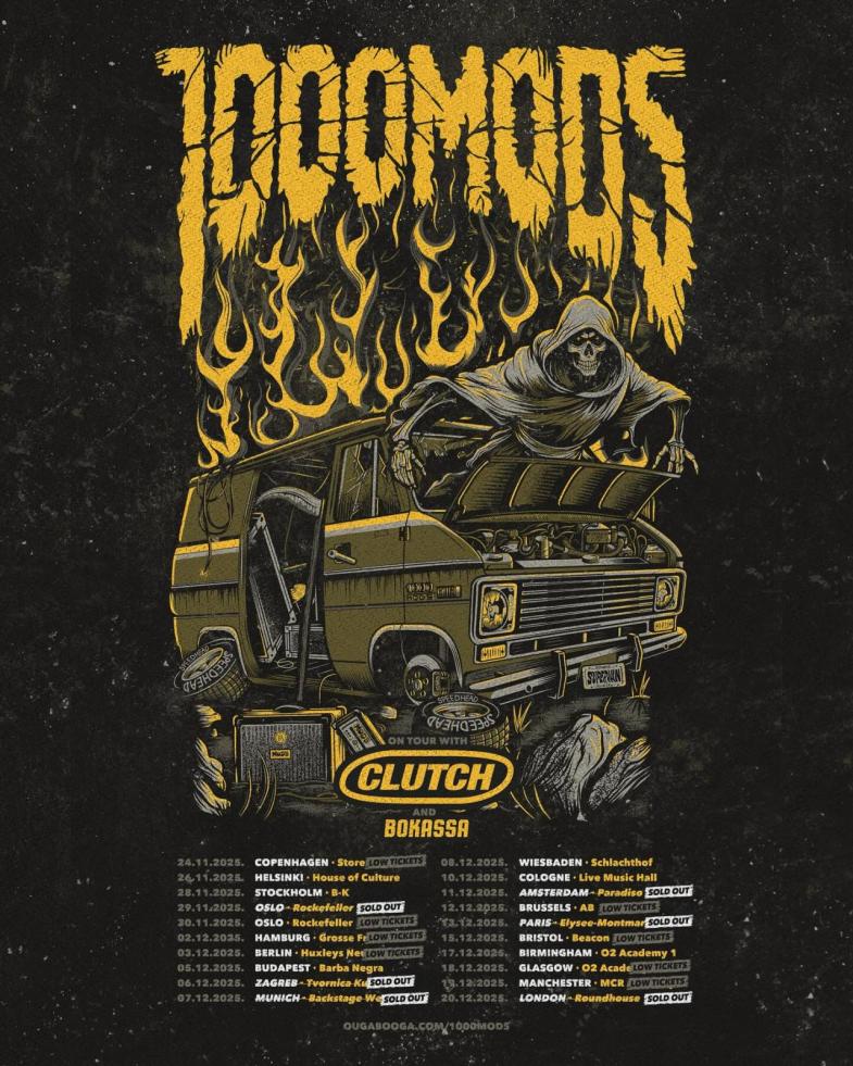 De græske tungrock- og stonerkonger kom noget anonymt ind på scenen, og deres underspillede attitude virkede næsten genert. Frontman Dani G. gav et hurtigt og noget mumlende ‘we are 1000mods’, inden de satte fra og gik ind i det hæsblæsende og dansevenlige track “Electric Carve”.
