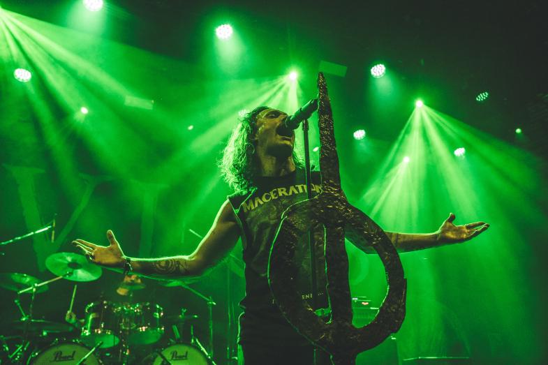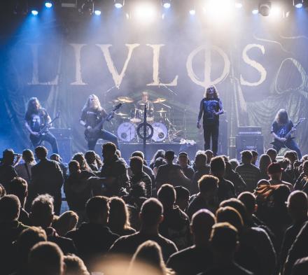 Hvorfor ikke bare lade den næsten dugfriske single være åbningsnummeret til koncerten, er der nok blevet sagt i øvelokalet, og sådan blev det så. Efter en kort, instrumental intro, hvortil Thomas, Franz, Kenneth, Benjamin og ikke mindst Niklas entrerede scenen og tog en dyb indånding, lagde de hurtigt og hårdt fra land med sangen ”Orbit Weaver”, som akkurat er blevet udgivet for en uge siden. Som altid skulle publikum lige indfinde sig efter at have været til andre koncerter, men der gik ikke længe, før gulvet i Amager Bio så ganske fyldt ud set oppe fra balkonen. Stærkt efterfulgt af albumåbneren ”And Then There Were None” fra albummet af samme navn trak Livløs os med ind i en tour de force i dansk melodisk dødsmetal af fineste kaliber. Der blev disket op med lækkerier fra begge deres albummer samt alle fire singler fra det kommende, og man må sige, at der blev udvekslet energi frem og tilbage mellem Livløs og publikum. Specielt Niklas Lykke var over hele scenen og adresserede publikum mellem sangene. Der skulle da heller ikke den store overtalelse til, førend der blev formet en ganske pæn moshpit, som også fik publikum til at smide hæmningerne og bare være i nuet.