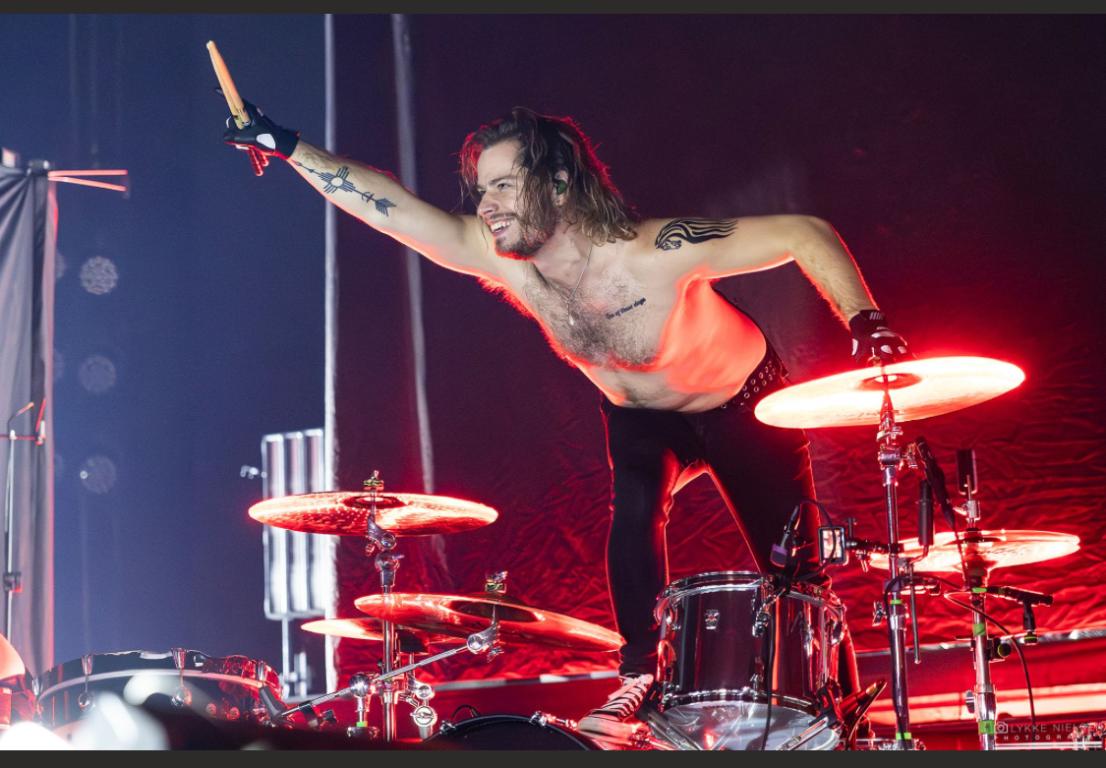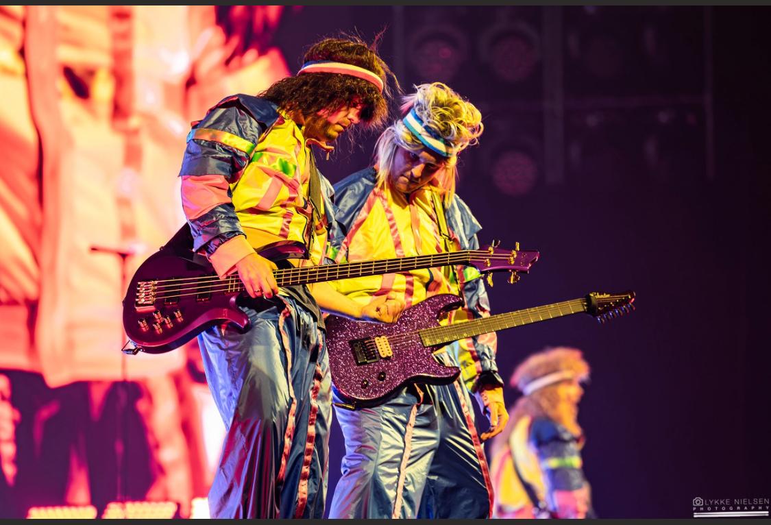 Man skal stå tidligt op, hvis man vil nå Electric Callboys telefontid, for bandet havde netop udgivet den nye single, “Tanzneid”, som de flåede koncerten åben med. Ligesom singlen var deres turné dugfrisk fra trykken, for bandet valgte af uransagelige årsager at begynde den i Danmark. Det kunne mærkes på deres massive energiudladning, hvis højspænding fik de friserede firserlokkers frisure til at rejse sig med hænderne mod taget. Deres spilleglæde virkede ægte, nærværende og nyfunden. Vi blev både introduceret til nyt materiale og en kærlig hilsen til de hardcore fans med dybe deep cuts i diskografien. Mellem sangene udfyldte animationer af sindrige kæmperobotter pauserne, så bandmedlemmerne kunne gennemføre deres mange kostumeskift uden at opholde showet. Der skete så meget på scenen, at man stirrede sig skeløjet for at få det hele med, og ved koncertens afslutning lignede vi alle papegøjefisk med øjnene på hver side af hovedet. Bandet spillede rollerne som alt fra Jane Fonda-lookalikes i neonlysende workoutdragter til diskoaliens, og man kunne på intet tidspunkt gætte, hvad der nu var i vente. Mellem teknobassens gennemtæskning af vinkedellerne og de metalcoreinspirerede screams var der også plads til en sjæler med den akustiske version af “Fuckboi” spillet nede blandt publikum. Her indtraf den eneste ulempe ved, at vi var første stop på turnéen: De havde simpelthen ikke prøvet det før og vidste ikke, hvorvidt det ville virke. Det gjorde det ikke. Tredje gang er lykkens gang, siger man, men vi var oppe på en del flere fejlslagne forsøg, før teknikken makkede ret. “Fortæl alle, at koncerten var så gennemført, at de endda havde planlagt fejl” sagde forsanger Kevin Ratajczak. Planlagt virkede det nu ikke, men bandet håndterede det med så fin humor, nærvær og professionalisme, at det ikke reducerede den samlede oplevelse af koncerten. Næsten tværtimod. Publikum vedblev at opbakke bandet, og resten af aftenen forløb gnidningsfrit.