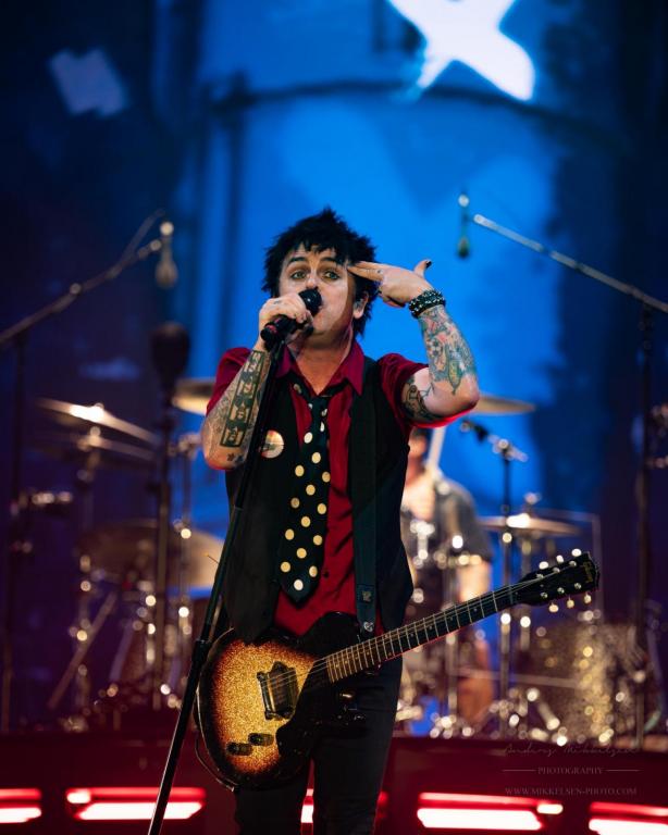 Til tonerne af Queens udødelige “Bohemian Rhapsody” og fællessang hertil var det blevet tid til aftenens hovednavn. Eller det troede vi i hvert fald, men først skulle der lige en fyr i kaninkostume ind at lave ballade på scenen til tonerne af The Ramones’ “Blitzkrieg Bop”. Et temmelig skørt element, men ikke desto mindre med til at sætte endnu mere gang i løjerne. Og løjer skulle det vise sig, vi fik masser af! Et uhyre veloplagt band lagde hårdt ud med “American Idiot”, “Holiday” og “Know Your Enemy”, og hvad frontmand Billie Joe Armstrong måske ikke besidder i højdemål, mestrer han omvendt i performanceevner. Som en blanding af Tigerdyret og Duracell-kaninen stormer han rundt og får alle publikummer med på fællessang og lå-lå-lå i næsten hvert eneste nummer, og det er ganske enkelt umuligt ikke at blive revet med. Dette forekom til tider ret langtrukkent, og det var derfor forløsende, da gruppen efter fem-seks numre begyndte at skrue lidt ned for pjat og gevaldigt op for seriøse klassikere. Numre som “Longview” og “Welcome To Paradise” ville være synd at ødelægge med for meget ligegyldigt ‘singalong’, og det blev da heldigvis heller ikke aktuelt. De blev leveret uhyre dynamisk og fuldstændig, som de skulle, i særdeleshed på grund af særklassen hos ‘The Most Dangerous Drummer In The World’, Tre Cool.