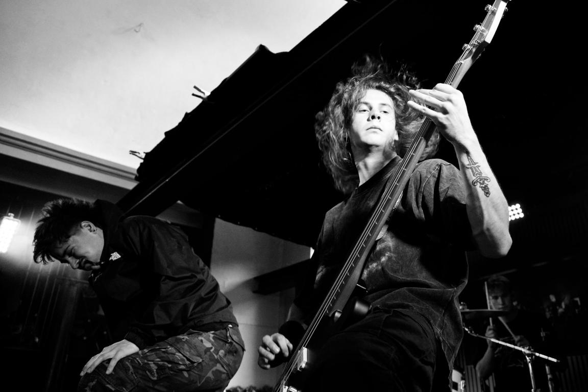 Med “Shackled To A Corpse” befandt mejeriet sig atter i landet, hvor den brutale dødsmetal regerer, og det var tydeligvis, hvad gæsterne var sultne efter. Lynhurtigt blev der sat gang i en circlepit, og det skulle også vise sig, at der ikke var mange øjeblikke med tomgang på gulvet. De to spadeførere fra Persecutor, Benjamin Stage og Stefan Sørensen, havde åbenbart ikke fået nok af pitten efter deres egen fest tidligere og var fast inventar under størstedelen af koncerten. Jeg er sædvanligvis til fals for rytmesektionen, og jeg brugte da også en væsentlig del af forestillingen på at betragte Neckbreakkers nye mand på trommerne, Viktor Bjørnstad, der også slår sine folder i hardcorebandet Split. Det var en fornøjelse at se ham udfylde de store sko, som Anton Bregendorf efterlod tidligere i år. Det er mit første bekendtskab med Bjørnstad, men mit førstehåndsindtryk var, at han besad lige dele kraft og præcision – nøjagtig, som jeg kan lide mine tøndebaskere. Da sættet nærmede sig sin afslutning, og der blev spurtet gennem “Face-Splitting Madness”, var manden bag kedlerne da også langt mere våd end tør. Sikke en kraftudladning!