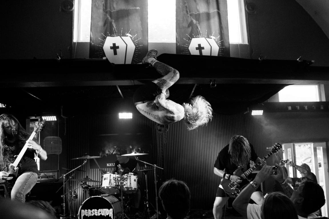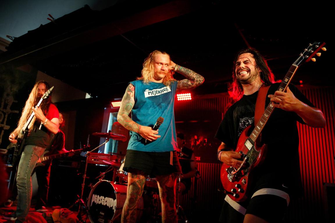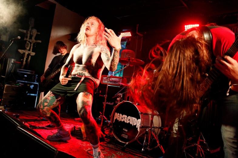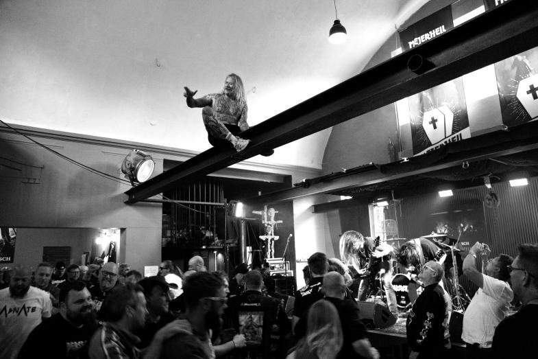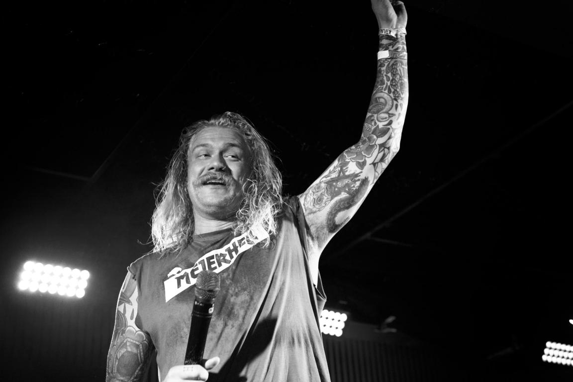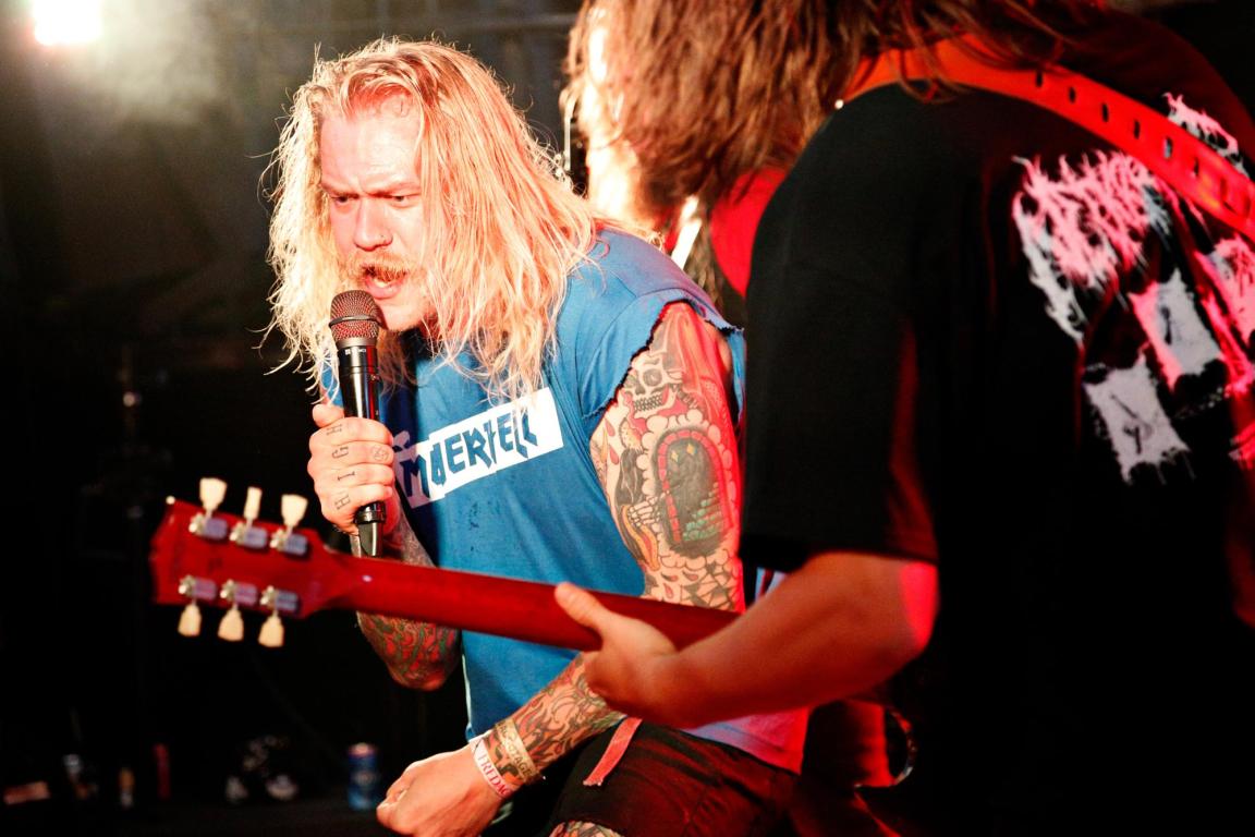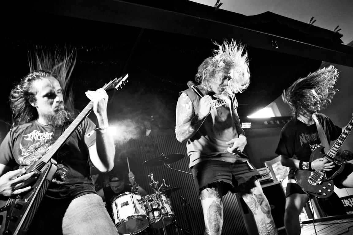 Jeg ved ikke, hvad de blander i vandet i Horsens, men for anden gang på denne dag skulle et band fra den egn være genstand for en kæmpe fest – måske er der noget med den gryde der? Bandet lagde overbevisende fra start med “Carnivore”, og fra første tone var der tændt for Truelsens showgen. Ja, i virkeligheden er det nok altid tændt. Frontmandens udskejelser grænsede til det apoplektiske under det nyere nummer “Multiplied Homicide”, der måske endnu ikke sidder på rygraden af publikum. Det blev dog spillet så overbevisende af bandet, at stemningen ikke dykkede på det grundlag. Da det, trods alt, blev tid til en lille sludrepause, blev det også tid til lidt selvironi fra Truelsen. En historie om, hvordan han til en koncert i Frankrig blev tilråbt ‘Obelix!’ af de fremmødte, grundet sin statur. Frontmanden mente dog selv, at de lyse lokker og det kraftige overskæg ledte tankerne hen på Asterix. Konklusionen blev, at han måtte være begge gallere på én gang.