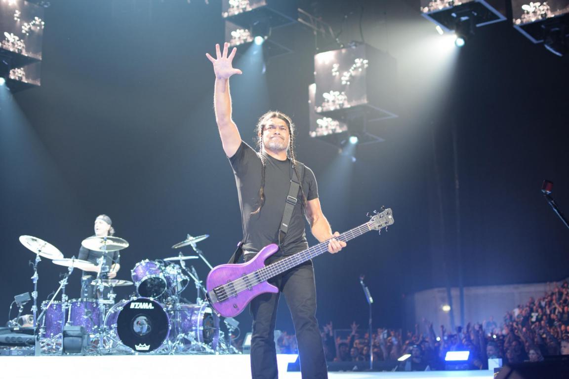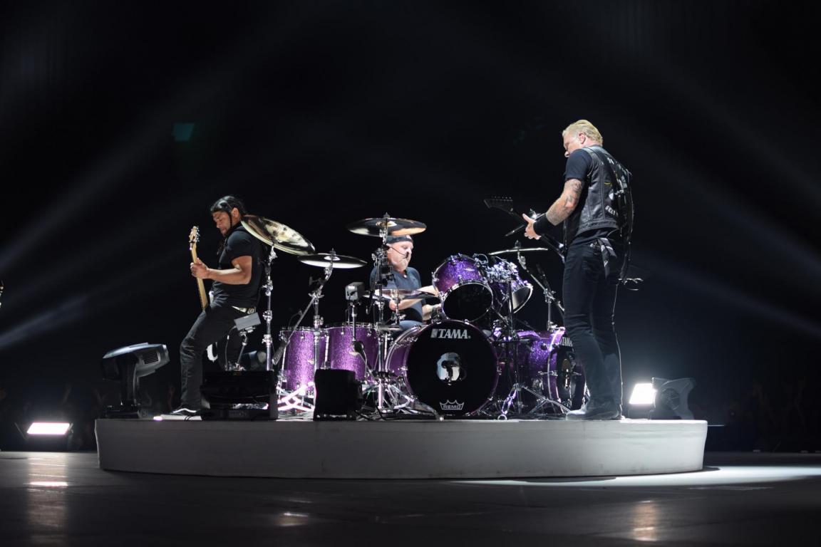 Det var et ganske livligt show, vi var vidner til denne lørdag aften. Der var, foruden droner og fikse kvadratiske skærme med skiftende budskaber, den førnævnte pyroteknik til at akkompagnere den brandvarme ”Fuel” og så et besynderligt percussion-indslag, hvor samtlige medlemmer i bedste Safri Duo-stil tæskede løs på nogle sagesløse kasser. Der har været delte meninger om berettigelsen af sådanne gimmicks, men i min optik bliver man sgu nødt til at finde på nye måder at more sig på job på, hvis du skal lave det samme igen og igen. Til gengæld var der ingen slinger i valsen, da de rev os midtover med veludførte ”For Whom the Bells Toll” og ”Fight Fire With Fire”. Og det virkede på ingen måde påtaget, deres glæde ved at få revanche. James virkede veloplagt og snakkesalig; mundtøjet fejlede intet, og han vidste heldigvis også godt, hvornår man skal være entertainer, og hvornår man skal spille røven ud af bukserne.