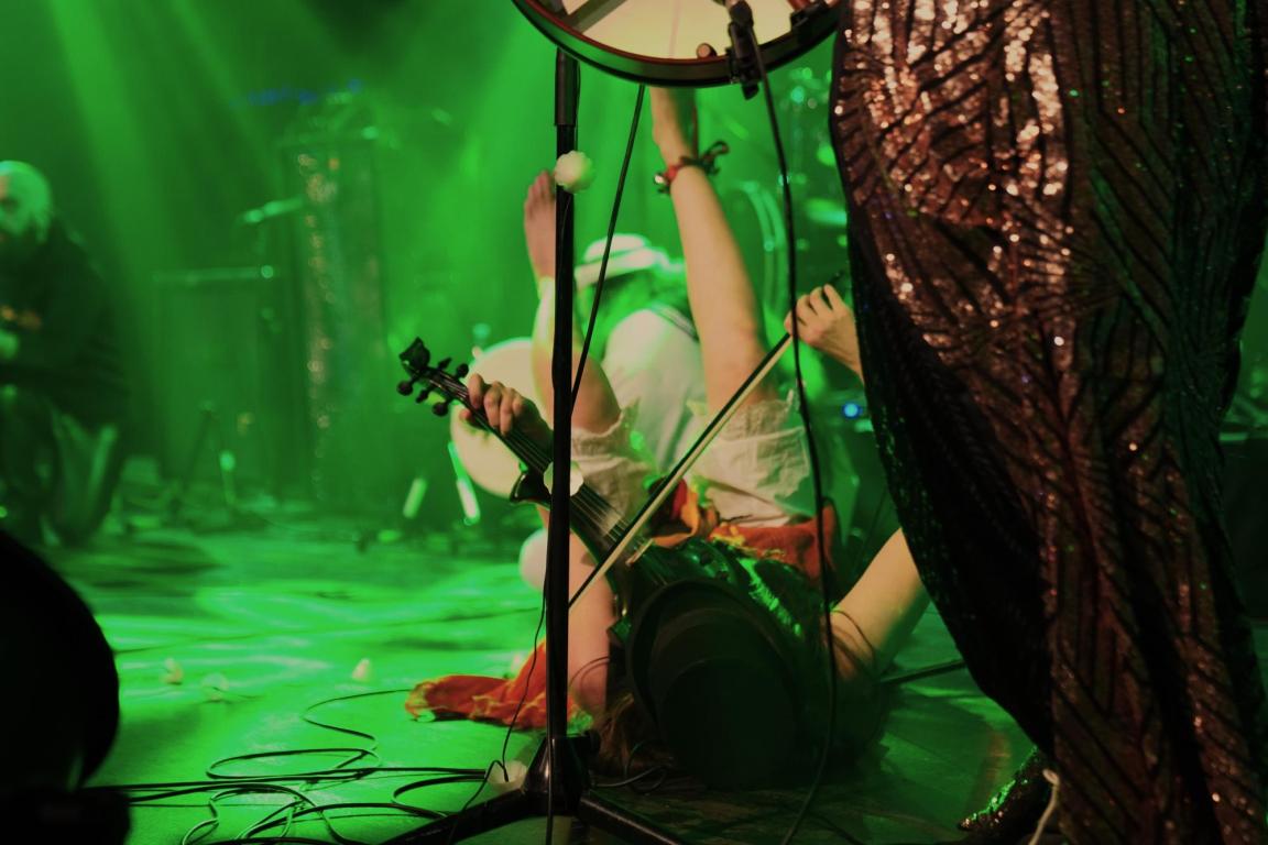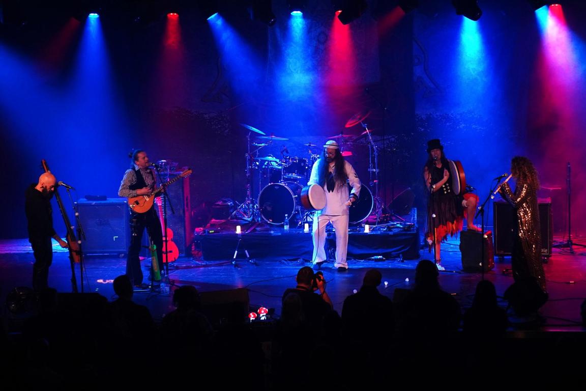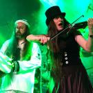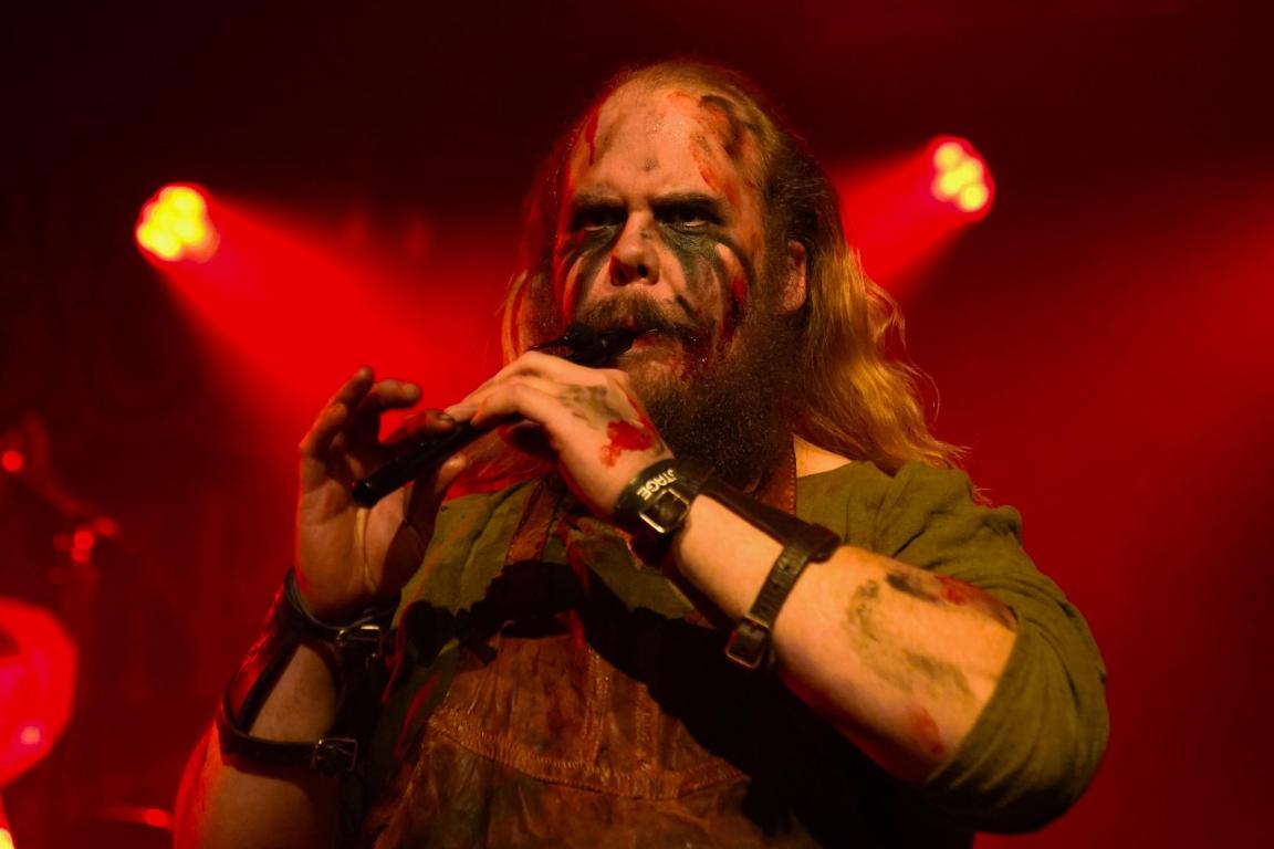 Cirka klokken 20 indtog det farverige orkester Ællevild omkring Laura Emilie Beck og Ambrosius Mesterton Graa den med lyskæder og fluesvampe oppyntede scene og lagde ud med nummeret “Dagsremse”, åbningsnummeret fra deres debutplade, Hele Dagen Lang. Ligeledes fra den plade var tredje nummer, “To Ravne”, en nyfortolkning af den oprindelig skotske vise “Twa Corbies”. På denne supplerede Astór Reidarson med bevinget fløjtespil i verdensklasse. Fjerde sang, der velsagtens havde det flatterende navn “Slaskepat” (?) og omhandlede Naurbjergets kælling, udgjorde uden tvivl et højdepunkt i bandets knap 30 minutter lange sæt. Sangen formåede med sin morsomme fortællestil og sin dragende melodi ført an af Beck på violin og vokal at lokke smilene frem på ansigtet af de fremmødte metalfans. I den sammenhæng vil jeg nævne Tanja Dræberg, der ikke blot bidrog med tamburin og blokfløjte, men også med en smuk backingvokal, der hev det samlede lydbillede op på et højere niveau. Rent genremæssigt kunne der nok være kritiske stemmer, der spørger, om dette band virkelig er egnet til en sådan optræden for øltørstige metalhoveder, der er langt over børnehavealderen. Men jeg må sige, at jeg for det første var yderst positivt overrasket og for det andet vil mene, at man – om man nu kan lide musikken eller ej – ikke kan sætte spørgsmålstegn ved bandets musikalske evner, og at de fik varmet publikum godt op til resten af aftenen. Hvis man godt kan lide folkinstrumenter og et farverigt show, var der i hvert fald nok at kigge på, og bandets gæster, der udover førnævnte Dræberg og Reidarson talte Steve Mason på trommer, gjorde et virkeligt fint arbejde – for hvad skal man med dobbeltguitar, hvis man kan få dobbeltblokfløjte! Jeg vil afslutningsvist citere Graas “Vi var Ællevild, og I var endnu vildere” og sige: “Nej, det var I!”