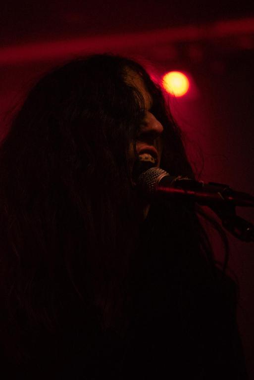Akkompagneret af atmosfærisk susen og skratten fra højtalerne indtog kvartetten selvsikkert scenen i det lille lokale, der efterhånden var godt fyldt op med forventningsfulde metalentusiaster. Allerede inden sættet for alvor begyndte, fremstod de fire musikere som én enhed med et strømlinet visuelt udtryk, og selvom dette blot var anden optræden med bandets nye bassist, Lucas Nørup, lignede det, at han altid havde været med. Det skulle vise sig, om det auditive ville stå lige så snorlige. Et ubestridt højdepunkt var definitivt deres spritnye single, “Collide”, der har veleksekverede temposkift ført an af trommen spillet af Anton Hansen og guitarpassager, der balancerede perfekt mellem sagte klimpren og hårdtslående riffs leveret af Lasse Braun. Det vidnede om, at bandet virkelig er ved at finde deres helt egen stil. På grund af det meget voluminøse lydbillede blev udtrykket til tider desværre en smule mudret, og særligt vokalen var engang imellem lidt svær at høre gennem de massive trommepassager – det kom dog også en smule an på, hvor i rummet man befandt sig. Langt hen ad vejen kom Blodmåne dog rigtig godt fra land og leverede en optræden, der bugnede af fortræffeligt guitararbejde, medrivende melodier og intensitet. Sættet blev afsluttet af “Luctus”, der lagde op til aftenens allersidste pit.