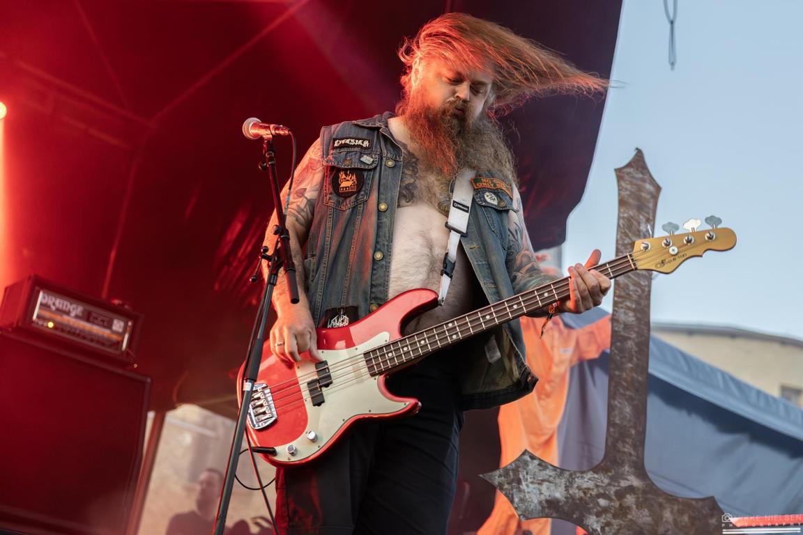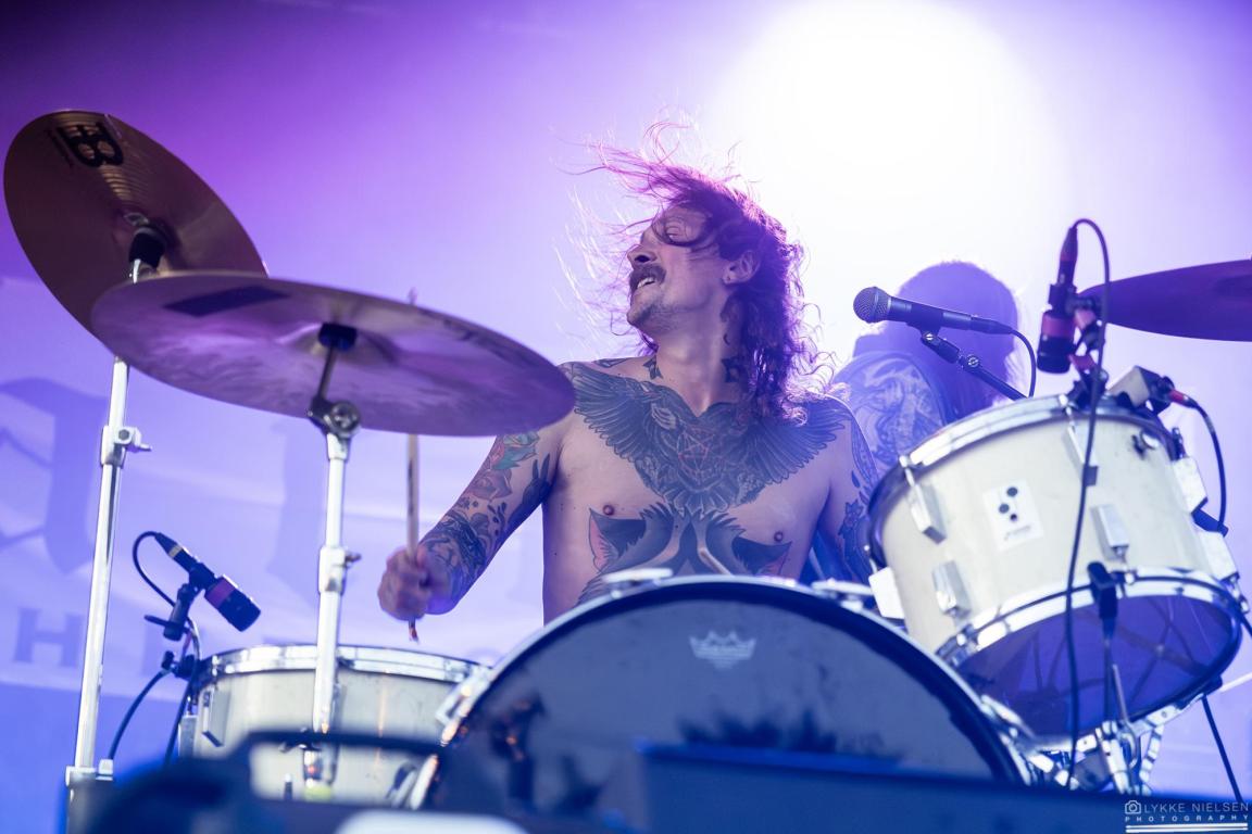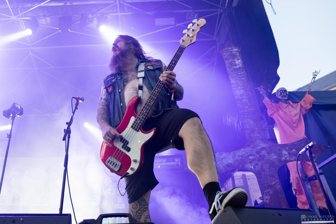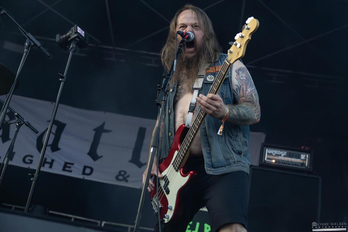 Mens solen gik ned over årets første dag på Dødsgangen, var det den danske trio Katla, der skulle varme op under det efterårskolde publikum. Med sin solide, intense doom metal og et altid festligt nærvær hører det til sjældenhederne, at Katla giver en dårlig koncert. Festivalpladsen var også godt fyldt med fans iført det velkendte, mørke Katla-merch, der med store hvide bogstaver hyldede kærlighed og Satan. Hypen vedrørende dagens koncert var desuden ekstra stor, for bandet havde annonceret, at de ville spille et helt specielt show.