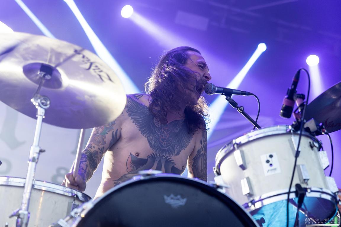 Og som lovet, så gik Cassandra Moase på som den allerførste, og med sin behagelige, rolige tale lullede hun os nærmest i søvn. Men dem, som kendte den ironiske søvn app-åbner fra Scandinavian Pain, vidste, at der ikke skulle soves nu. Derimod ville man få sig en voldsom opvågning, når ”Goblet of Power” slog til … og det må man sige, nummeret lykkes med denne aften. Sanger og trommeslager Rasmus Bang kom på scenen med en opsparet hidsighed, der flåede publikum, stemmebånd og trommeskind fra hinanden. Hvert et hæst skrig og trommeslag gik lige i mellemgulvet. Med det samme var stemningen høj og varm foran scenen, hvor Katla blev indhyllet i kaskader af røg og badet i farverigt baglys. Fredagsfesten var i gang!