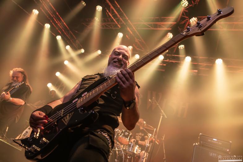 InnerWishes sammentømrede symfonier bar præg af at være samlet efter powermetallens klassiske instruktionsmanual. Nuvel, rytmerne og de dertilhørende riffs løb ikke lige så stærkt, som man kan høre andre bands fra genren spille, men vi kunne jo heller ikke have, at hastigheden fik fingrenes sener til at sprænges som overspændte guitarstrenge. Der var ellers intet at udsætte på guitaristerne, Thimios Krikos og Manolis Tsigos. Deres ansigters folder vred sig mellem de to klassiske teatermaskers stadier af komik og tragedie, og til tider så det næsten ud, som om strengespillet var særdeles smertefuldt. Eller nydelsesfuldt, jeg kunne ikke rigtig se forskel. Deres store anstrengelser bar frugt, for deres klassiske riffs var veleksekverede og ledsagede trommeslager Fragiskos Samoilis traditionelle, taktfaste slag, som var riffs og rytmer gamle venner på rollatorrulletur gennem parken. Mens InnerWish lånte powermetallens stilistiske rammer, var sangenes lyriske indhold langt mere livsnært. Fra den personlige beretning i “Needles in My mind” til “Modern Babylon”s protestprægede kontekst: Vi var langt fra drager og dværge, men kæmpede nu med virkelige monstre. Det viste fint, hvordan powermetallens genredefinition er plastisk nok til at kunne rumme både humor og alvor. Jeg kunne dog godt have ønsket mig, at de havde taget sig flere kreative friheder og ikke blot leveret power efter den gamle samlemanual. Hvad med at nedbryde en mur hist og her og skabe lidt kaos i det velkendte? Man kunne godt have ønsket, at der var flere skruer løs i symfoniernes møbel, så InnerWish ikke blot fremstod som endnu en anonym Ikeastol i en lang række af lignende modeller, som blot venter på småt brændbart. Efter de første par sange kunne man regne ud, hvordan resten ville udforme sig, og koncerten bød på meget få overraskelser.