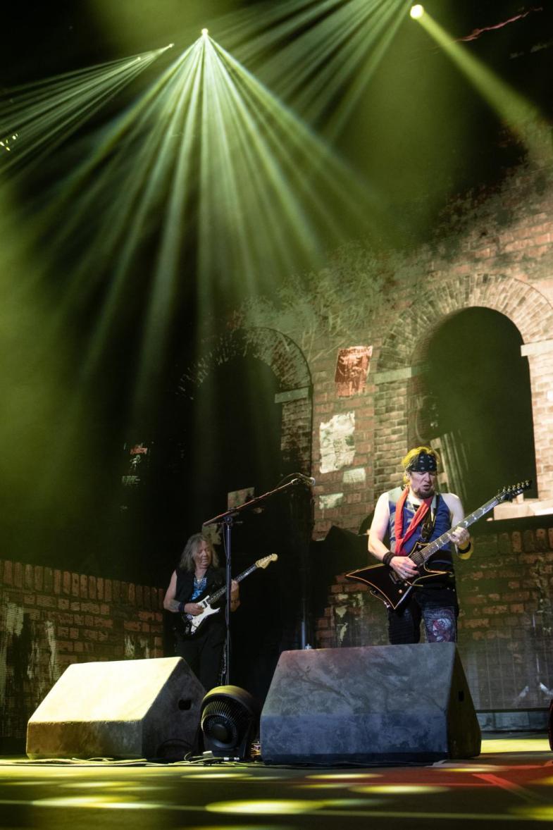 Med sætlisten i hånden var det tydeligt, at denne Legacy of the Beast-aflægger – nu rebranded som Run For Your Lives Tour – var skabt med fanservicen i centrum. ’I hjertet gemt, men aldrig glemt’ kunne have tegnet overskriften, for sjældent har man set en så velbalanceret sammensætning af fjernarkiverede deep cuts og ikoniske stadionbaskere. Maiden fik publikum til at eksplodere i euforisk genkendelsesglæde og fællessang fra første strofe. “Wrathchild” og “Killers” blev således leveret med aggressiv elegance, hvor iscenesættelsen af verdens velsagtens lettest genkendelige metalmaskot illustrerede, at det legendariske orkester stadig mestrer metallisk teater som kun få andre. En ekstra dimension tilføjedes, da Bruce Dickinson introducerede trommeslager Simon Dawson, der på fornem vis erstattede pensionerede Nicko McBrain. Bandet leverede med en energi og et overskud, man ikke forventer af et orkester med 50 år på bagen. Dave Murray, trods sine 68 år, udstrålede ungdommelig fandenivoldskhed, mens Steve Harris’ bundsolide basgange kørte showet frem som en panserkrydsers maskinrum. “Rime of the Ancient Mariner” var blandt aftenens mest dramatiske højdepunkter – et næsten 14 minutter langt epos, fremført med både præcision og patos. Da Union Jack blev erstattet af Dannebrog under “The Trooper”, nåede jubelen nye højder. Og selvom jeg i årevis har foretrukket “Hallowed Be Thy Name” fortolket af Cradle of Filth, måtte jeg denne aften bøje mig. Dickinsons stemme svigtede kun svagt under “Run to the Hills”, men leverede ellers en overbevisende præstation, der gav nyt liv til klassikerne.