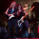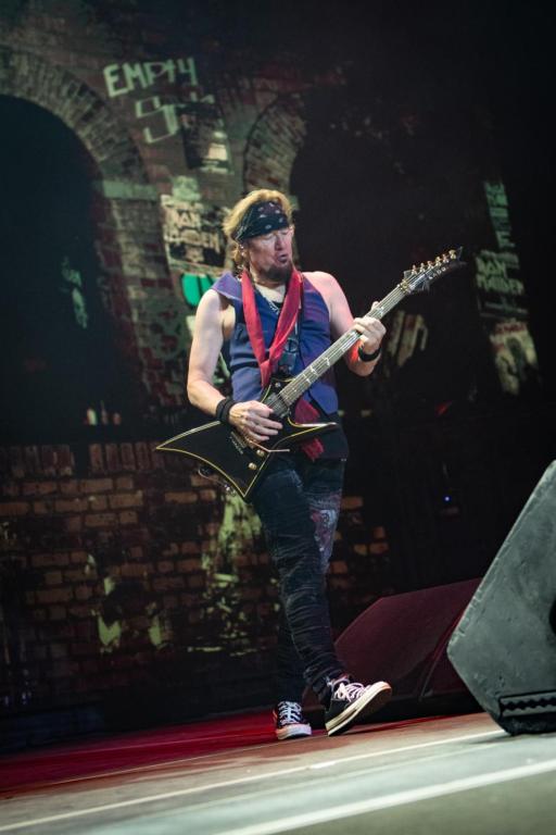 Hvis man under opvarmningen havde frygtet, at Royal Arena var blevet et hospice for stakåndede NWoBHM-fædre, blev de bange anelser hurtigt manet til jorden. Klokken var lige passeret 20:53, da UFO’s “Doctor Doctor” sivede ud af højttalerne og signalerede, at aftenens hovedforestilling kunne tage sin begyndelse. Herfra var der ingen slinger i valsen, og i løbet af de næste par timer cementerede de aldrende briter deres status som en af metallens største og vigtigste institutioner. Inden det nåede så vidt, blev vi under ouverturen “The Ides of March” nænsomt guidet gennem en stribe stemningsmættede videomontager: først Londons snævre, skumle gyder, siden et mareridtsagtigt tableau over Paris, hvor Eiffeltårnet rejste sig i et rødgrønt skær. Og da bandet trængte igennem mørket med “Murders in the Rue Morgue” – ikke spillet live i Danmark siden 2005 – brød intensiteten ud i lys lue. Royal Arena var som ved et trylleslag forvandlet fra slumrende sovesal til samspilsparat, syngende armé.
