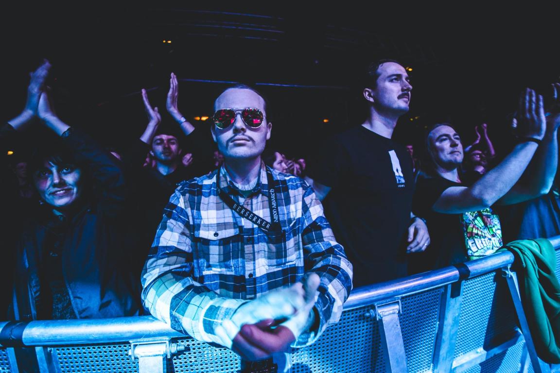 Koncerten åbnede med “Ghost”, og allerede her stod det klart, at Karnivool stadig mestrer deres dynamiske opbygninger. Lyden var høj og tung som under opvarmningen, og især guitarist Drew Goddard leverede skarpe og præcise riffs fra starten. De virkede alle meget fokuserede og intense i deres udtryk. Desværre var vokalen sat for lavt eller resten for højt. I hvert fald var det ofte svært at høre frontmand Ian Kenny. Som jeg forstod, bad han flere gange om at blive skruet op, uden at det skete, så vidt jeg kunne høre. Man kan diskutere, om han kunne have kompenseret lidt mere for den uheldige lyd på en eller anden måde, men som han selv udtalte, så er det jo ikke hans opgave. Det er heller ikke nødvendigt, når man som ham har Mindflayer-egenskaber og bare kan aktivere direkte afspilning i publikums hjerner. For de indviede (eller smittede) var det totalt “hivemind”, og der blev sunget med, med stor indlevelse og kraft. Ofte dansede Ian Kenny, med lukkede øjne, rundt med sig selv, og sang så tyst, at det druknede, mens salen skrålede mod loftet med knyttede hænder, og ligeledes dansende med sig selv. En inderlig og individuel fest i et kæmpe Karnivool-fællesskab. Jeg havde følelsen af at være inviteret med til kultfest hos venlige og fordybede fundamentalister. Højdepunktet rent aktivitetsmæssigt blandt publikum kom uden tvivl under “Goliath” og senere “Themata”, hvor publikum sang med i en grad, der næsten overdøvede Ian Kennys vokal. “New Day” satte for alvor gang i pitten, og det var således de ældre hits, der fik mest fysisk fat i publikum, men det var også forventeligt med det nye album, som er mere let og svævende i lyden end tidligere albums. Koncerten mistede en smule momentum i midtersektionen med “We Are” og “Deadman”, som føltes en smule flade. Det var, som om energien kortvarigt faldt, før den blev genopbygget.