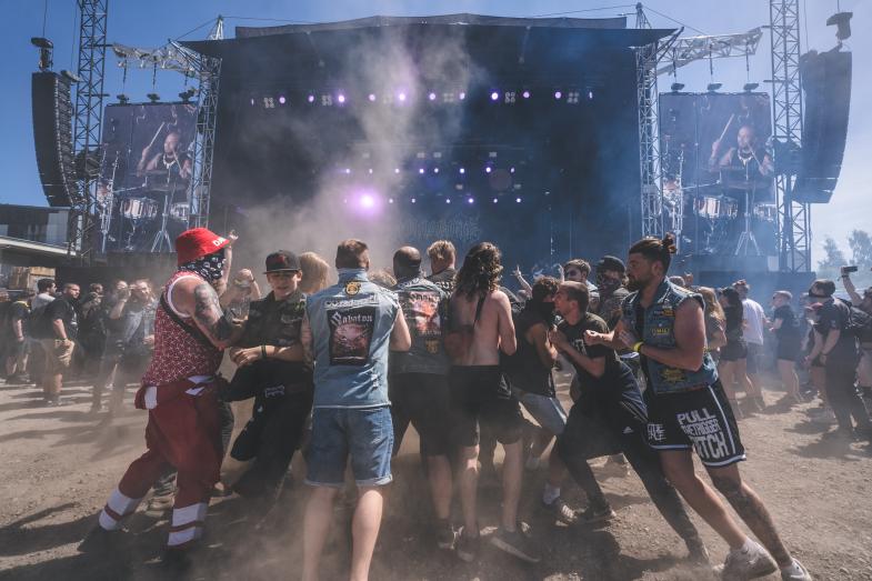Brand of Sacrifice gjorde en formidabel indsats for, at vi alle fik en god start på torsdagen. Og det lykkedes i den grad. De holdt gryden i kog på bristepunktet, og lige da man troede, det ikke kunne blive vildere, så trak de tempoet helt ud og flækkede os alle med et fabelagtigt break. Det var satme tungt og dystert. Præcis som vi kan lide det, og det var svært at se, hvem der havde det fedest: publikum eller band.