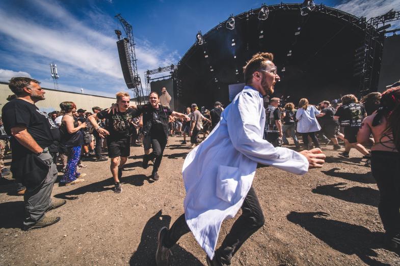 Præcis klokken 13:00 gik amerikanerne på, og der var vist ikke mange foran scenen, der delte min skepsis. Der gik nemlig ikke ret lang tid, før stemningen var langt bedre, end jeg tidligere har oplevet den sværeste koncert på festivalen. Altså den første. Klogt nok havde de ikke helt døde poeter valgt at lægge ud med en af deres største ørehængere, ”.intoodeep.”, og så var vi i gang. Efter et par sange udbrød forsanger Jack Underkofler: 'I wanna see a fucking pit', og som altid kvitterede Copenhell-publikummet.