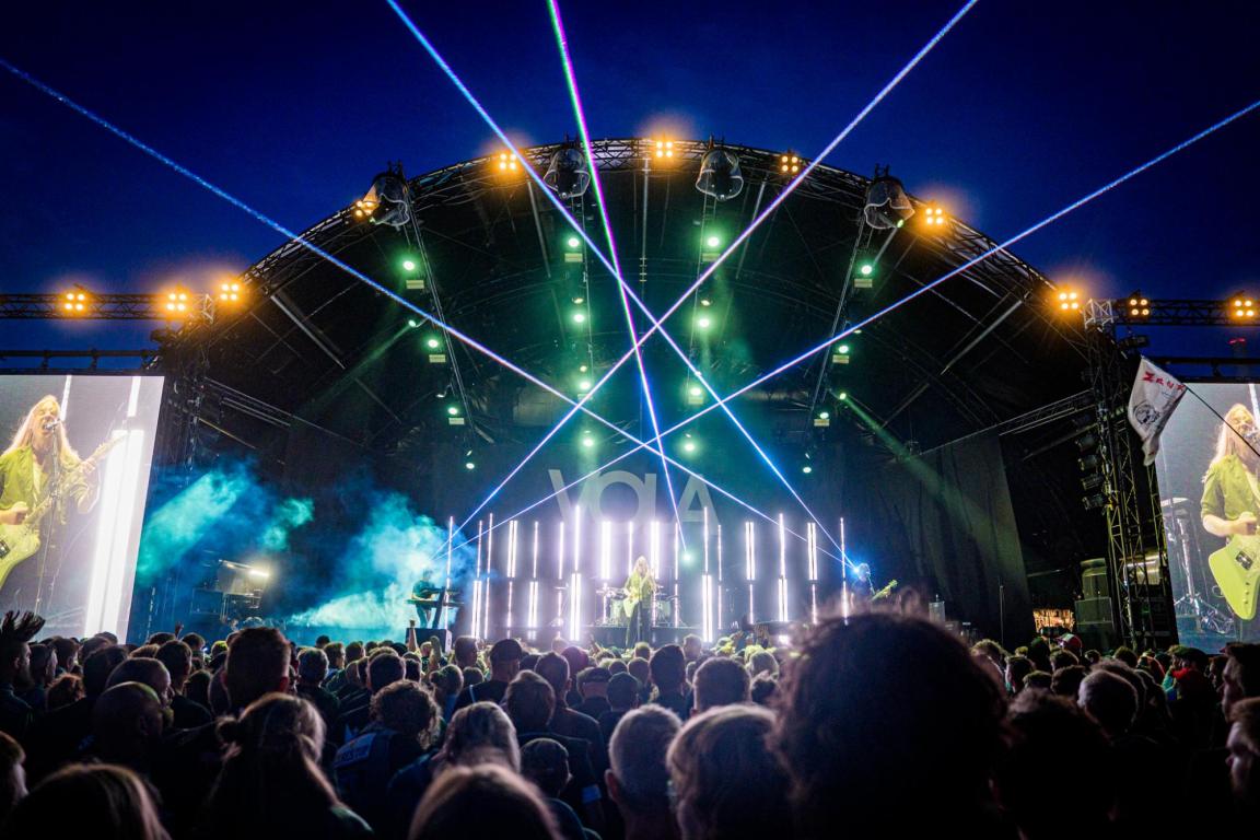 Åbningsnummeret ”We Will Not Disband” satte øjeblikkeligt tonen, og de dybe guitarriffs bragede frem, mens lyset klippede mørket itu, og publikum gled hurtigt ind i VOLAs karakteristiske trance. Visuelt havde bandet også gjort sig umage, og der var tænkt over detaljen. Der blev kørt med hvidt trommesæt, hvid guitar hos forsanger Asger Mygind og et par markante hvide lyssøjler, der skabte kontrast til de sorte instrumenter på fløjene.