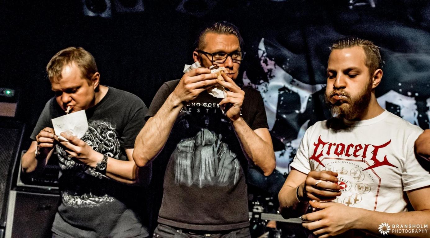 Når man indtager scenen iført (meget) korte shorts samtidigt med, at man growler det ene stykke lyrik ud efter det andet, kan det da kun være godt. Og ja, det var det også. Det danske band Baest (som nok de fleste har hørt om efterhånden) havde endnu en gang indtaget en af de danske scener, og det gjorde de med en blanding af entusiasme, hyldest til Crocell og fuldskab, som man ikke ser så tit. Det var dybt, brutalt og underholdende.. næsten lige før man på et tidspunkt nærmest håbede, at forsangerens små shorts ville bukke under for den headbanging, der blev fuldført på scenen, da det ville have sat prikken over i’et. De danske herrer viste endnu en gang, hvorfor netop de har indtaget det ganske, danske land så hurtigt, som de har. De har publikum med fra start, og der bliver nydt hvert et sekund på begge sider af scenen. Derudover var bandet også fader til aftenens første wall of death, hvilket var ganske underholdende, taget i betragtning af, at stedet ikke rummer mere end max 150 mennesker. Det var smukt, og det var endnu en gang et beast, der gerne må gemme sig i mit skab, når jeg skal sove.