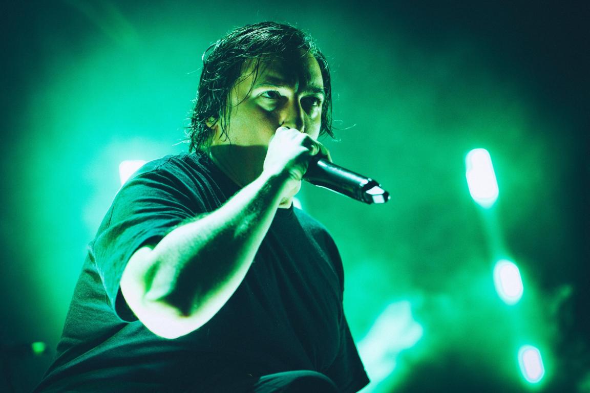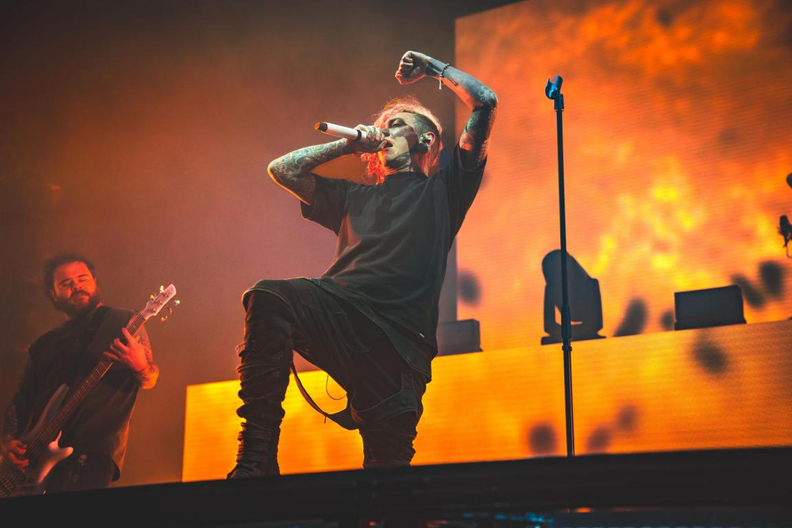 Lydbilledet var massivt og omsluttende, som en sort bølge, der rullede ind over salen og trak publikum med sig ned i bandets apokalyptiske univers. Will Ramos stod i centrum som aftenens ubestridte kraftfelt. Hans vokalpræstation var både ekstrem og kontrolleret, fra bundløse gutturale grynt til de ekstremt høje pig squeals, der skar gennem hallens rum som flænsende metal. Samtidig bevægede han sig med en næsten manisk energi, der holdt publikum i konstant spænding.