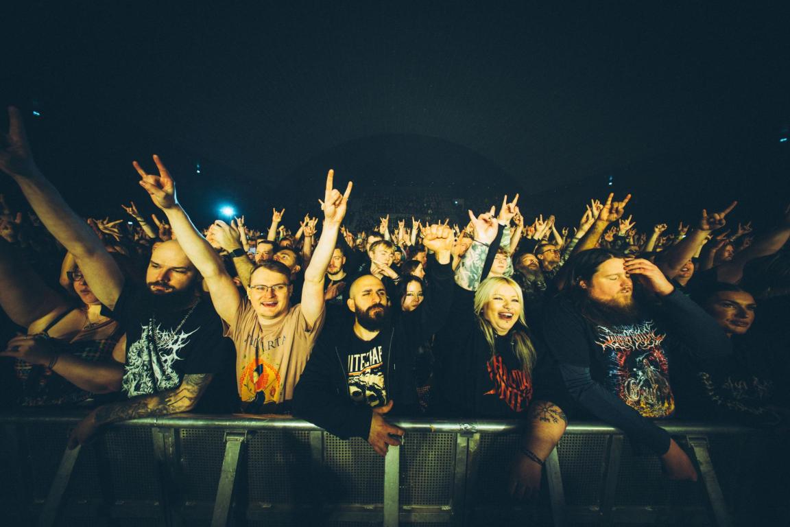 Svenske Humanity’s Last Breath fik lov til at åbne showet denne søndag og bød på midnatsmesse, selvom klokken kun havde rundet 18.00. Deres nærmest kvælende blackened deathcore kom blændende fra start med ”Väldet”, og publikum labbede det i sig. Filip Danielsson i front leverede et dybt, brutalt udtryk, og med hætten trukket godt ned om ansigtet fremstod han da også mest som en kultleder foran sin flok. Hans afgrundsdybe vokal fik fint modspil af såvel båndet kor og Tuomas Kurikka – men musikken fik også ad flere omgange lov til at ånde uden vokalen.