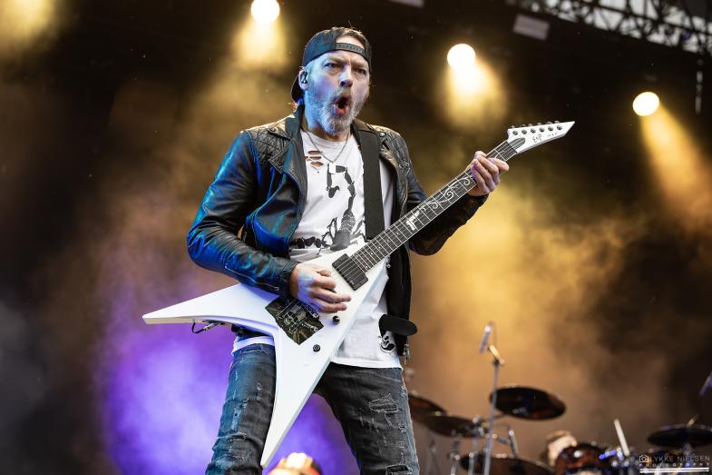 Mørket havde sænket sig over Gdansk og Mystic Festival. Parken var fyldt til randen med folk, og ud fra fremmødet var der ikke et mikrosekunds tvivl om, at det her var den koncert i dag, som flest havde glædet sig til. Der stod et rødt skær ud fra scenen, og til tonerne af Exodus’ velkendte “Bonded by Blood” trådte bandet ind på scenen. Der opstod straks en circlepit i parkens centrum, mens den tilbagevendte Rob Dukes overlod mikrofonen til publikummet i omkvædet. Selv de bagerste rækker 25 meter fra scenen råbte med på omkvædet.